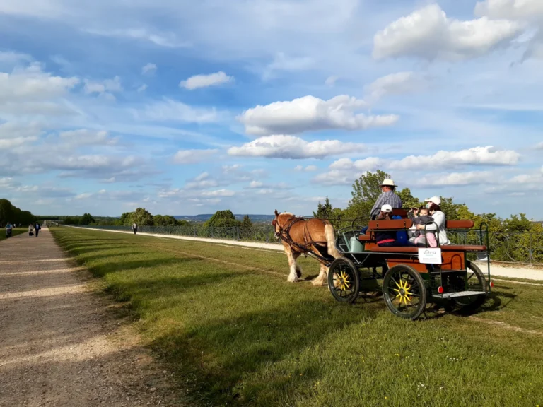 Vivez un moment d’exception à l’occasion d’une balade en calèche dans le parc du château de Saint-Germain-en-Laye (Grande Terrasse de Le Nôtre, vue imprenable sur la vallée de la Seine et Paris) et en forêt.