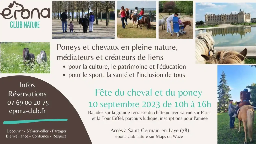 A bientôt avec nos poneys et chevaux islandais à la découverte de nouvelles émotions et rencontres dans un cadre merveilleux et historique à 15 km de Paris ! Au programme : balades sur la grande terrasse du château de Saint-Germain-en-Laye et en forêt, parcours ludique, inscriptions pour l’année.